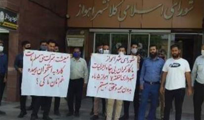 به گزارش حقوق بشر در ایران بنقل از عصر ما خوزستان, امروز دوشنبه ۱۶تیر ماه ۱۳۹۹، جمعی از کارگران واحد اجرائیات شهرداری منطقه ۷اهواز در اعتراض به پرداخت نشدن بیش از ۶ماه حقوق ماهیانه آنها در مقابل ساختمان شورای شهر و ورودی استانداری خوزستان تجمع اعتراضی برگزار کردند.