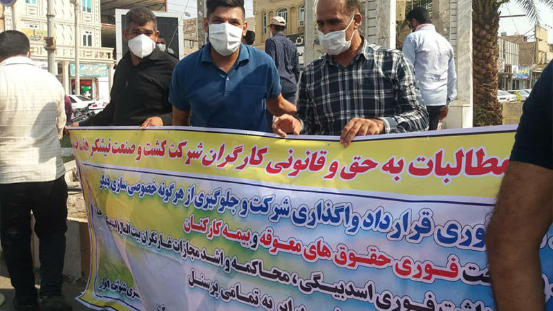 حقوق بشر در ایران – امروز پنجشنبه ۱۹ تیر ماه ۱۳۹۹, در ادامه تجمعات اعتراضی شهروندان ایران که ناشی از سوء مدیریت حکومت جمهوری اسلامی در بخشهای مختلف اقتصادی, اجتماعی, فرهنگی و محیط زیستی و مطالبات مالی و دیگر موارد مدیریتی کشور است جمعی از کارگران مجتمع نیشکر هفت تپه و جمعی از کشاورزان شهرستان هویزه در اعتراض به تداوم نقض حقوق شهروندیشان تجمعات اعتراضی را برگزار کردند.