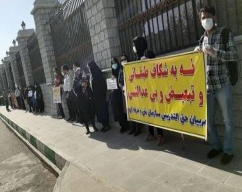 به گزارش حقوق بشر در ایران بنقل از اتحادیه آزاد کارگران ایران, امروز یکشنبه ۱۲ مرداد ماه ۱۳۹۹، جمعی از معلمان حق التدریس شاغل در سازمان فنی حرفه ای در مقابل ساختمان مجلس در تهران تجمع اعتراضی برگزار کردند.