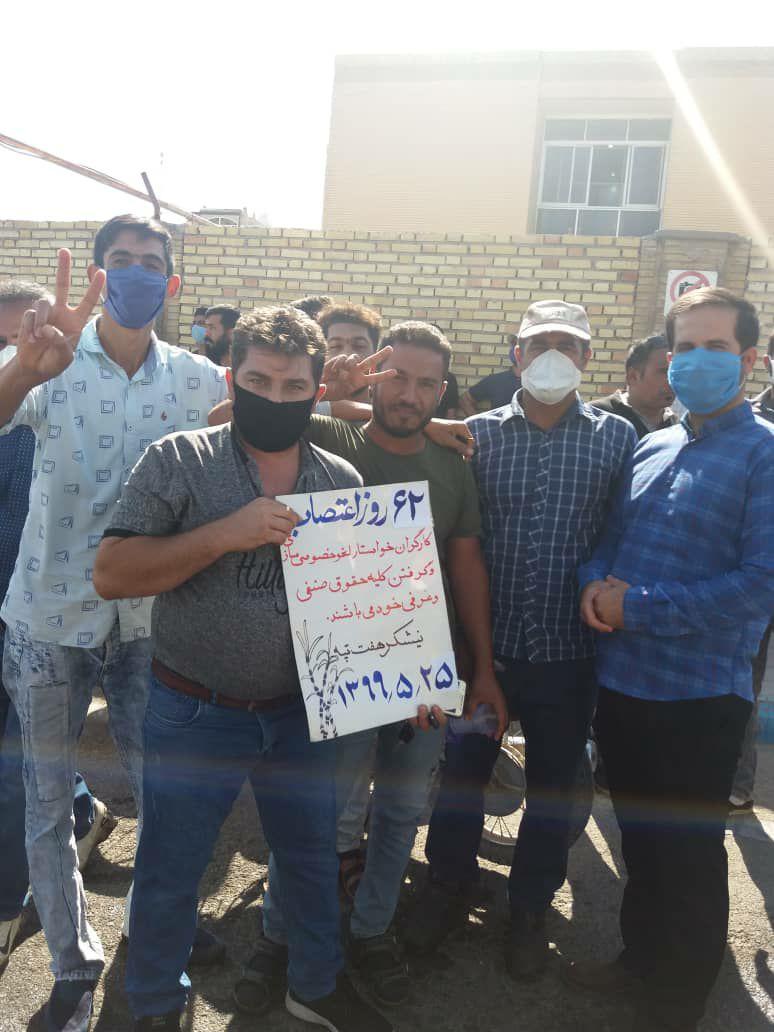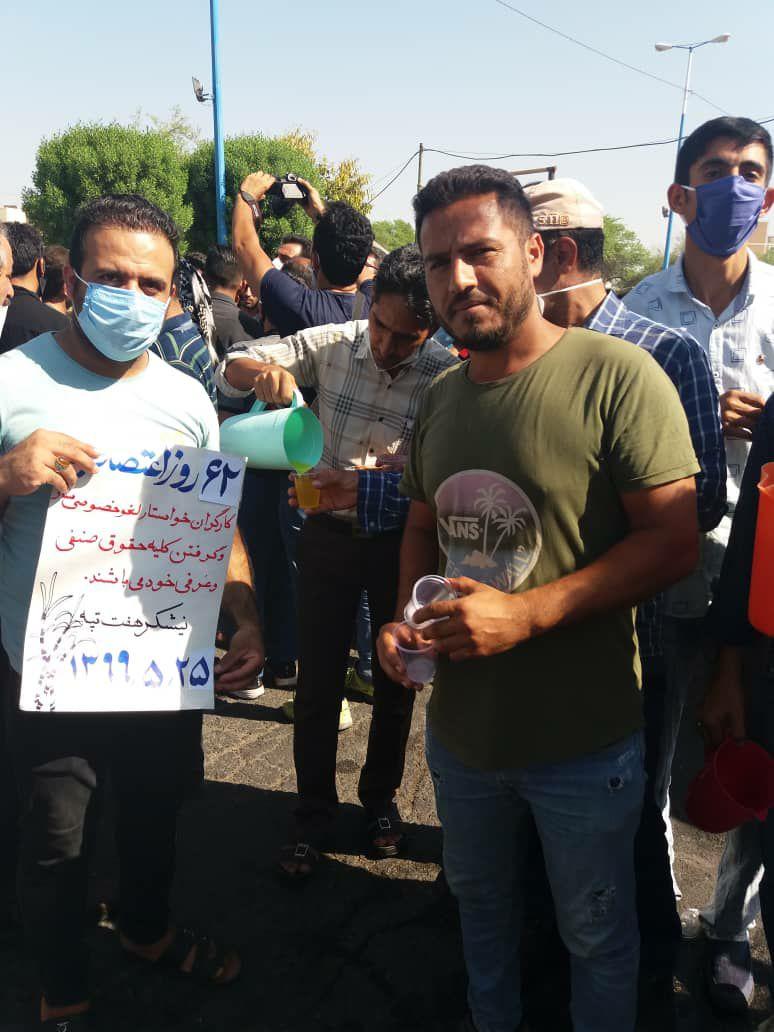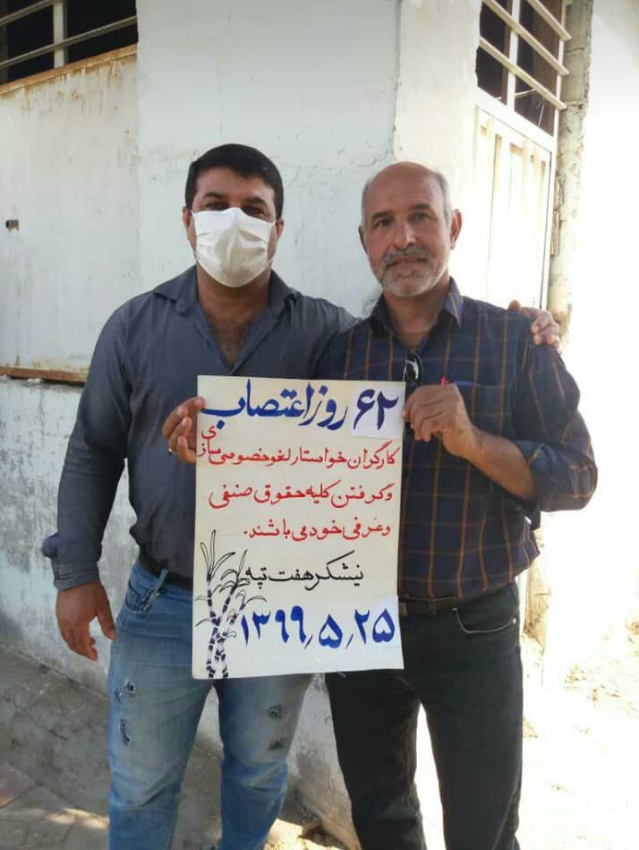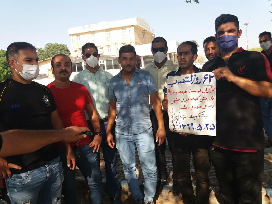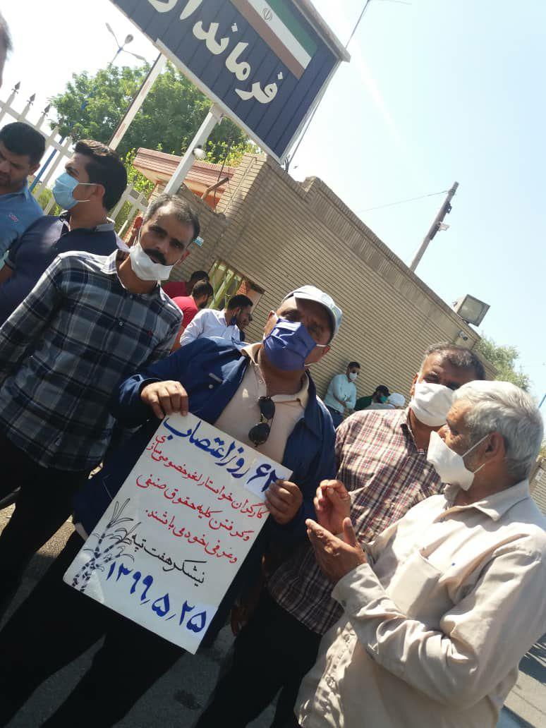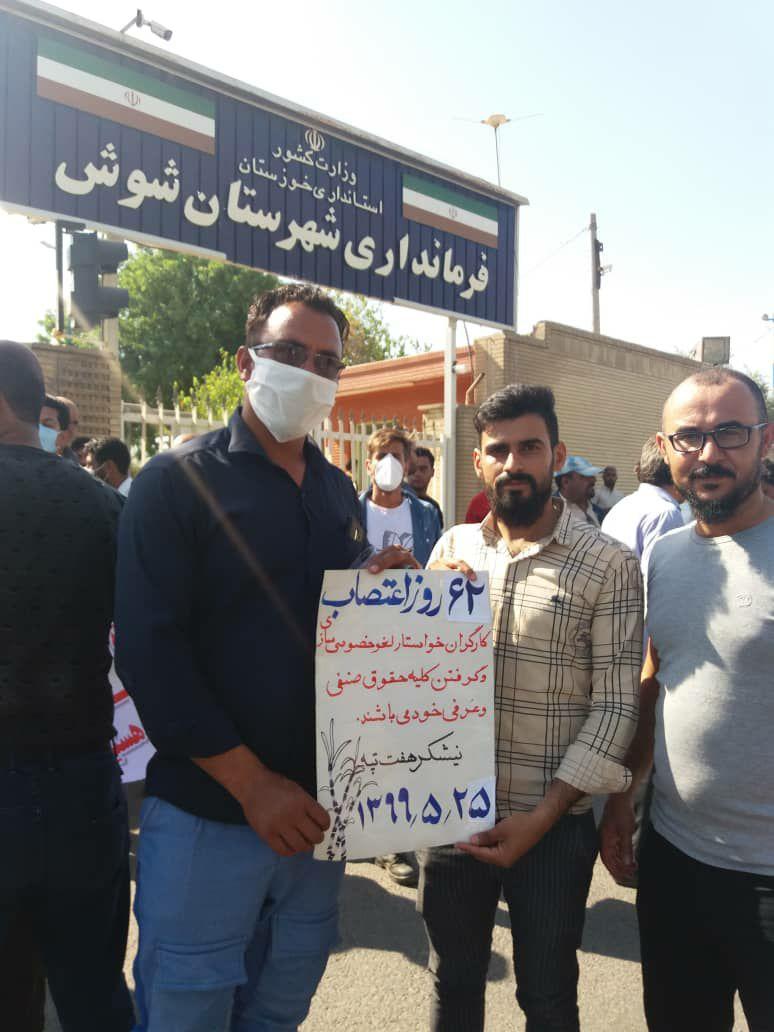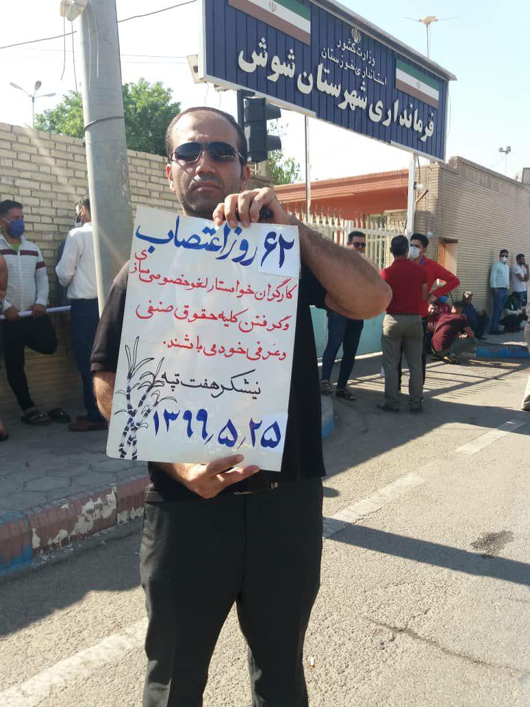 به گزارش حقوق بشر در ایران بنقل از سندیکای کارگران نیشکر هفت تپه, امروز شنبه ۲۵ مرداد ماه ۱۳۹۹, شصت و دومین روز اعتصاب کارگران کشت و صنعت نیشکر هفت تپه، با حضور جمعی از کارگران این واحد صنعتی تولیدی در مقابل درب فرمانداری شهرستان شوش برگزار شد.