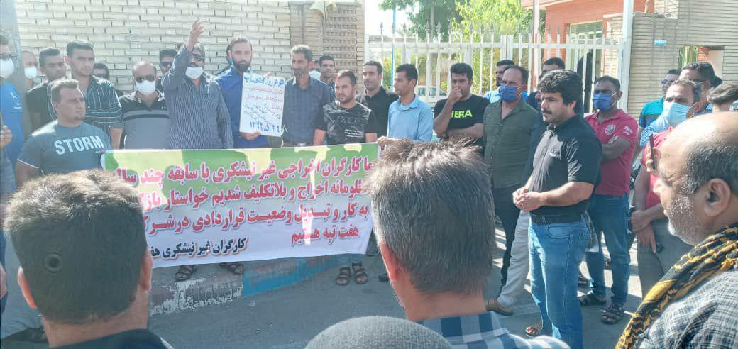 این شهروندان معترض به وضعیت استخدامی و محرومیت از امنیت شغلی معترض هستند و خواستار تعیین تکلیف وضعیت استخدامی خود هستند.