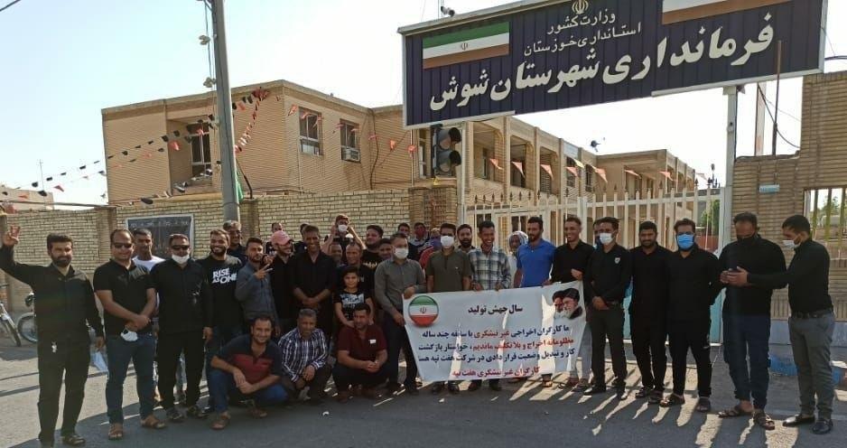 به گزارش حقوق بشر در ایران به نقل از اتحادیه آزاد کارگران ایران، امروز شنبه ۲۲شهریور ماه ۱۳۹۹، جمعی از کارگران نیشکر هفت تپه « غیر نیشکری » اخراج شده از این شرکت در مقابل فرمانداری شهرستان شوش تجمع اعتراضی برگزار کردند.
