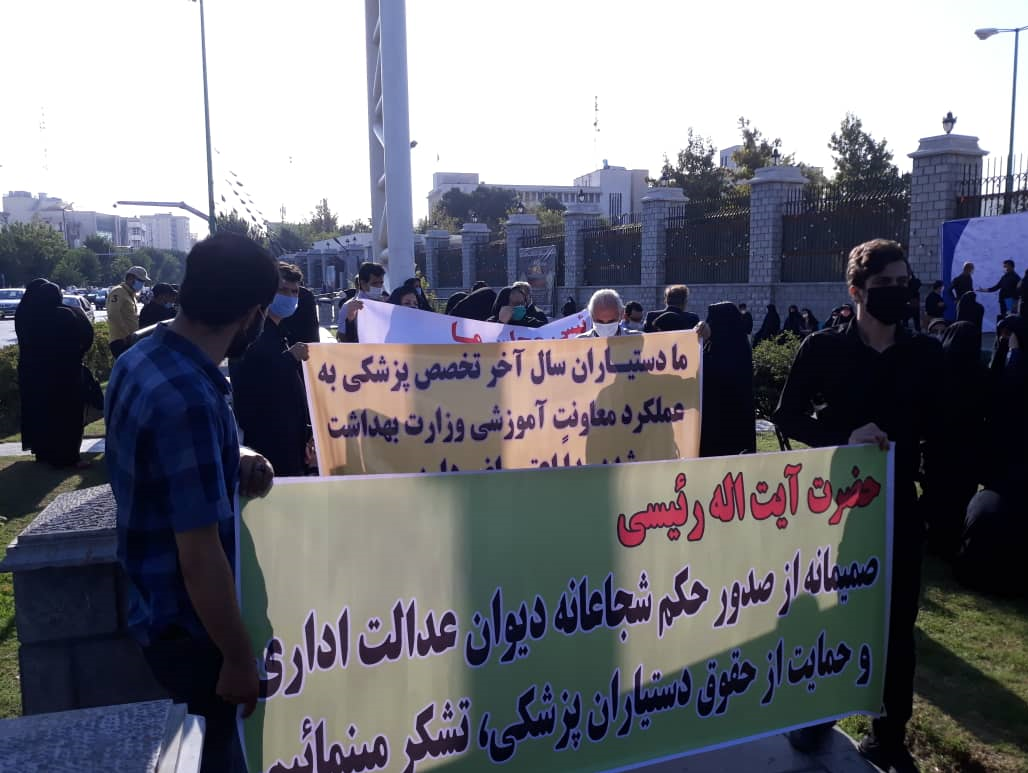 به گزارش حقوق بشر در ایران به نقل از فارس، امروز سه شنبه ۲۵شهریور ماه ۱۳۹۹، جمعی از دانشجویان سال آخر رشته پزشکی در اعتراض به تبعیض بوجود آمده و عدم رعایت عدالت اجتماعی در اخذ آزمون گواهینامه در مقابل ساختمان مجلس در تهران تجمع اعتراضی برگزار کردند.