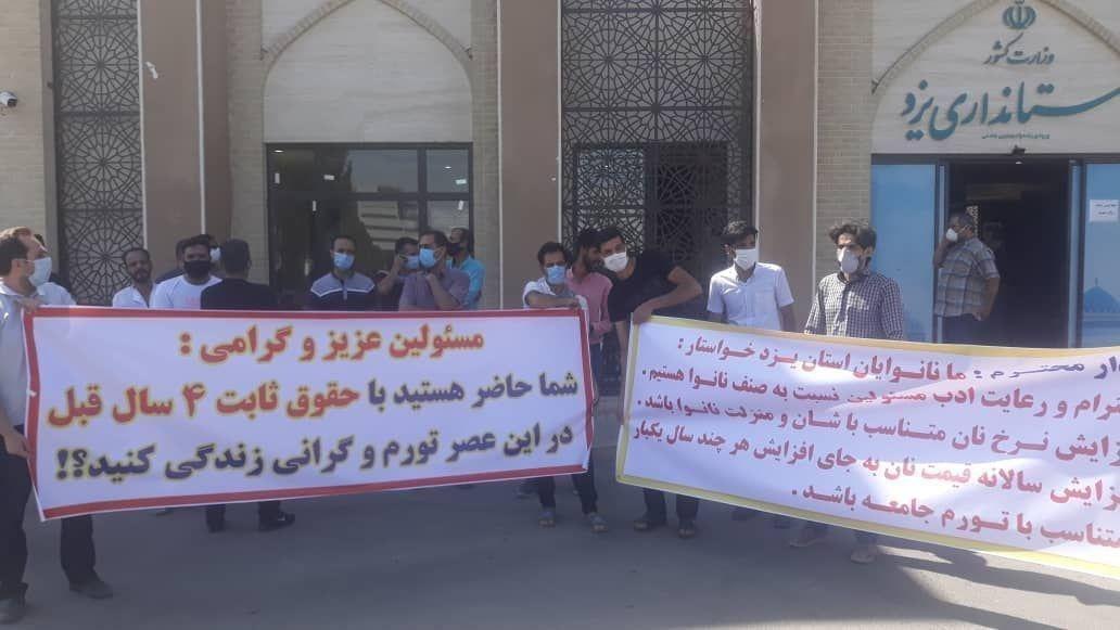 به گزارش حقوق بشر در ایران به نقل از ایرنا، روز دوشنبه ۲۴شهریور ماه ۱۳۹۹، جمعی از نانوایان استان یزد در اعتراض به مناسب نبودن قیمت نان با هزینه های جاری آنها برای تهیه آن در مقابل استانداری یزد تجمع اعتراضی برگزار کردند.