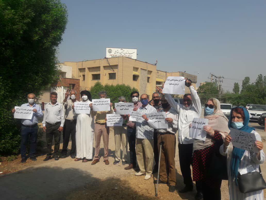 به گزارش حقوق بشر در ایران به نقل از اتحادیه آزاد کارگران ایران، امروز سه شنبه ۲۵شهریور ماه ۱۳۹۹، جمعی از بازنشستگان تامین اجتماعی ساکن اهواز و کرمانشاه با حضور مقابل اداره سازمان تامین اجتماعی این شهر تجمع اعتراضی برگزار کردند.