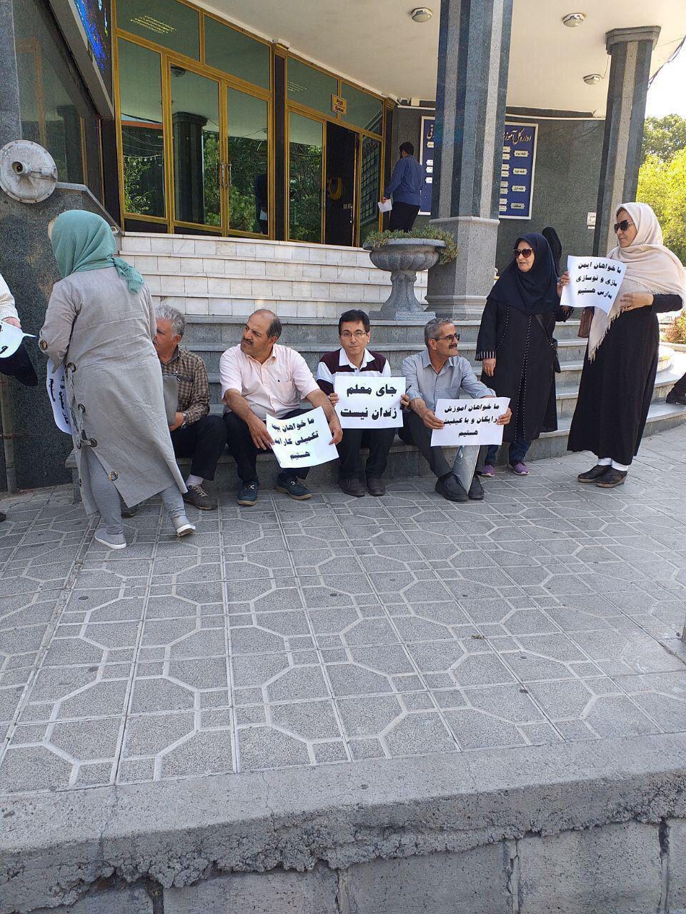 در جریان این تجمع معترضان در حمایت از معلمان زندانی شعارهایی از جمله “معلم زندانی آزاد باید گردد” و “زندان، تهدید دیگر اثر ندارد” را سر دادند.