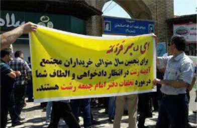 به گزارش حقوق بشر در ایران, امروز شنبه ۲ شهریورماه ۱۳۹۸, جمعی از مالباختگان مجتمع تجاری آدینه رشت، در اعتراض به برآورده نشدن مطالبات خود، در مقابل مصلی این شهر دست به تجمع اعتراضی زدند.