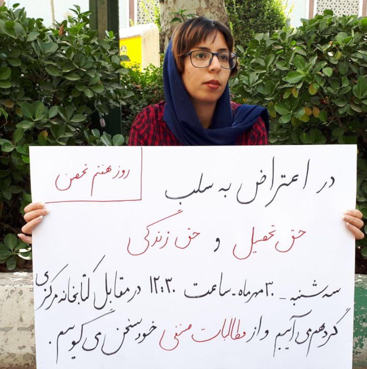 به گزارش حقوق بشر در ایران, امروز دوشنبه ۲۹ مهر ماه ۱۳۹۸، هفتمین روز از تحصن سها مرتضایی, دانشجوی محروم از تحصیل که با رتبه ۱۰ کنکور سراسری به دلیل فعالیتهای صنفی دانشجویی ستارهدار شد در مقابل دانشگاه تهران تحصن شد.