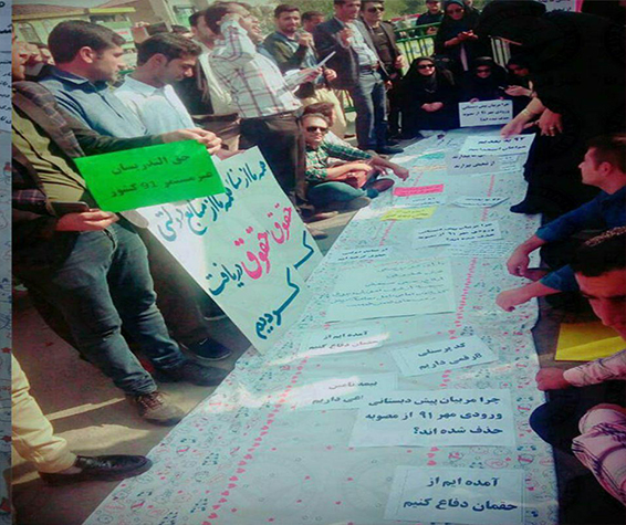 حقوق بشر در ایران – طی روزهای گذشته و امروز, در ادامه تجمعات اعتراضی شهروندان در اقصی نقاط ایران که ناشی از سوء مدیریت حکومت جمهوری اسلامی در بخشهای مختلف اقتصادی, اجتماعی, فرهنگی و محیط زیستی و مطالبات مالی و دیگر موارد مدیریتی کشور می باشد, جمعی از پرسنل شرکت شایگان مهر آپادانا در دشت سیستان, بازنشستگان گروه ملی فولاد, چهاردهمین روز از تحصن سها مرتضایی, دانشجوی محروم از تحصیل, جمعی از معلمان حق التدریس و نهضت سواد آموزی, مالباختگان موسسات مالی و اعتباری کاسپین و ثامنالحجج, کارکنان شهرداری شهرستان شهریار, کارکنان سازمان فرهنگی، ورزشی و اجتماعی شهرداری تبریز, کارگران و پرسنل شرکت آذرآب اراک, با برگزاری تجمعات اعتراضی نسبت به نقض حقوق شهروندیشان اعتراض کردند.