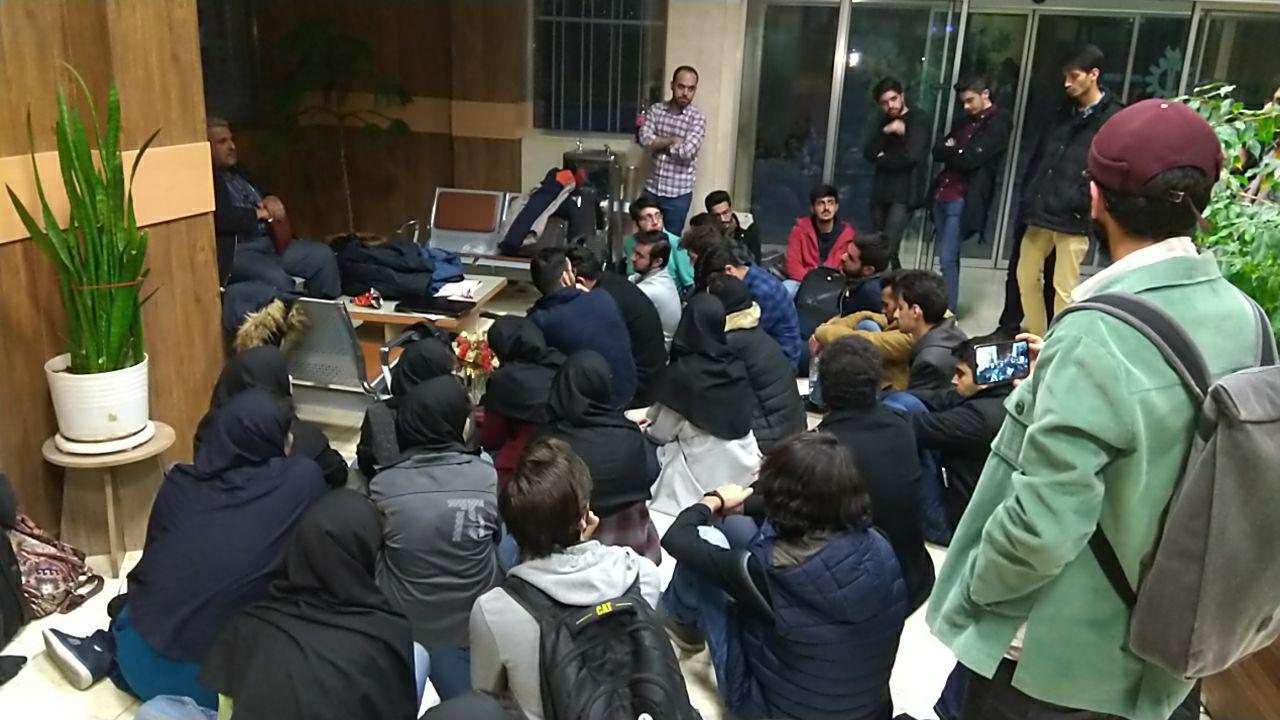 این تحصن در شرایطی برگزار شد که حراست دانشگاه درهای ساختمان ریاست را بسته و مانع از شرکت باقی دانشجویان به تحصن شده بود.
