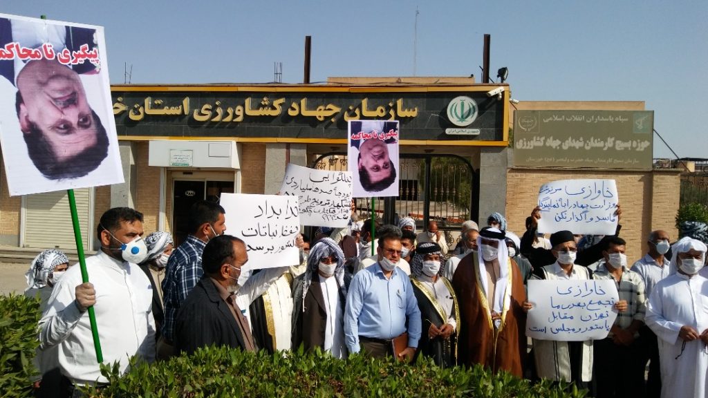 به گزارش حقوق بشر در ایران بنقل از خبرگزاری علم و فناوری از استان خوزستان، روز جمعه ۲۳ خرداد ماه ۱۳۹۹, جمعی از کشاورزان استان خوزستان در مقابل ساختمان جهاد کشاورزی این استان تجمع اعتراض برگزار کردند.