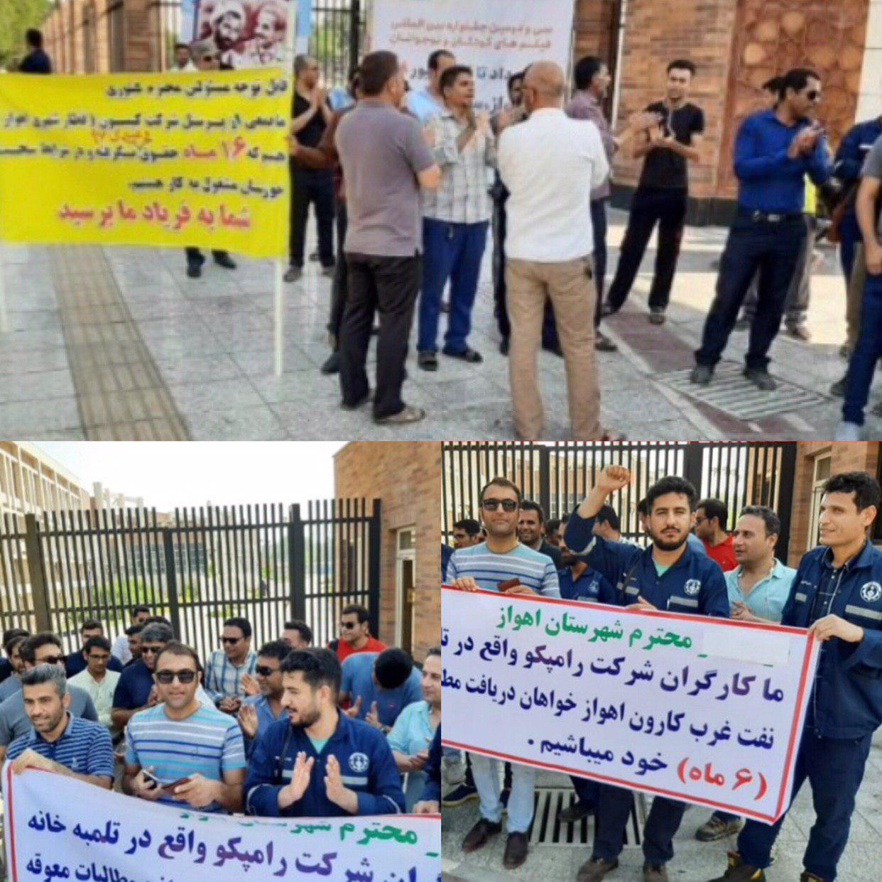 به گزارش حقوق بشر در ایران, امروز یکشنبه ۳ شهریور ماه ۱۳۹۸، جمعی از کارگران شرکت رامپکو اهواز در دومین روز متوالی در مقابل درب استانداری خوزستان در اعتراض به عدم دریافت ۶ماه حقوق ماهیانه شان که معوق شده دست به تجمع اعتراض زدند.