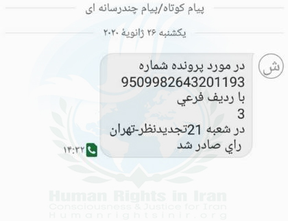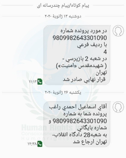 این منبع مطلع همچنین گفت: “پیامک دیگری هم امروز به زرتشت احمدی راغب رسید و مربوط به صدور حکم حبس تعزیری « بدون درج مقدار حبس صادره », بر علیه این فعال مدنی از بابت اتهام “تبلیغ علیه نظام”, توسط شعبه ۲۱ دادگاه تجدید نظر استان تهران می باشد که وی پیش تر و در مرحله بدوی در این پرونده به تحمل ۶ ماه حبس تعزیری محکوم شده بود”.